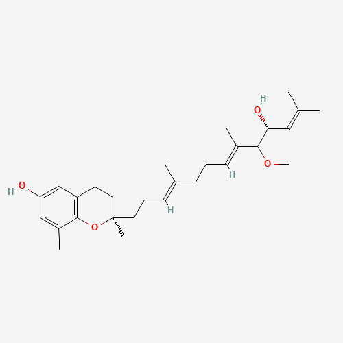 - Synonyms:Sargachromanol F;Sargachromanol F [INCI];Sargachromanol F, (+)-;UNII-L16DPC130A;L16DPC130A;856414-55-6;2H-1-Benzopyran-6-ol, 3,4-dihydro-2-((3E,7e,10R)-10-hydroxy-9-methoxy-4,8,12-trimethyl-3,7,11-tridecatrien-1-yl)-2,8-dimethyl-, (2R)-;2H-1-Benzopyran-6-ol, 3,4-dihydro-2-((3E,7e,10R)-10-hydroxy-9-methoxy-4,8,12-trimethyl-3,7,11-tridecatrienyl)-2,8-dimethyl-, (2R)-;CHEMBL462715;DTXSID90234892;BDBM50483665;Q27282582