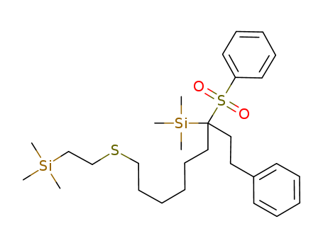 Silane, trimethyl[1-(2-phenylethyl)-1-(phenylsulfonyl)-7-[[2-(trimethylsilyl)ethyl]thio ]heptyl]-(130220-22-3)