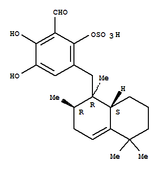- Synonyms:Benzaldehyde,2,3-dihydroxy-5-[(1,2,3,5,6,7,8,8a-octahydro-1,2,5,5-tetramethyl-1-naphthalenyl)methyl]-6-(sulfooxy)-,(1a,2a,8aa)-; Siphonodictyal D