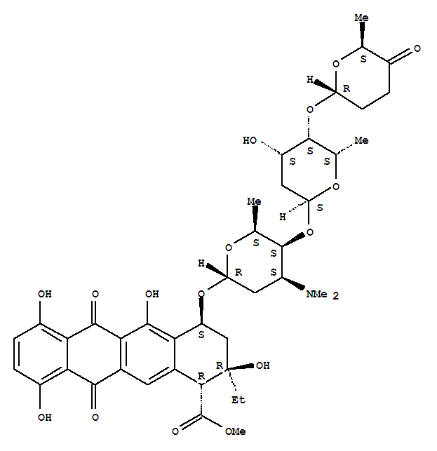- Synonyms:1-Naphthacenecarboxylicacid,2-ethyl-1,2,3,4,6,11-hexahydro-2,5,7,10-tetrahydroxy-6,11-dioxo-4-[[2,3,6-trideoxy-4-O-[2,6-dideoxy-4-O-[(2R-trans)-tetrahydro-6-methyl-5-oxo-2H-pyran-2-yl]-a-L-lyxo-hexopyranosyl]-3-(dimethylamino)-a-L-lyxo-hexopyranosyl]oxy]-,methyl ester, [1R-(1a,2b,4b)]-; Cinerubin A (8CI); 1-Hydroxyaclacinomycin A;Antibiotic MA 144A2; Ciclamycin 5; Cinerubine A; MA 144A2; NSC 18334; NSC243022; Rhodirubin C; Spartanamicin B