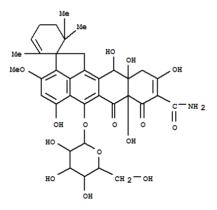 - Name: Spiro[2-cyclohexene-1,2'(1'H)-cyclopenta[de]naphthacene]-9'-carboxamide,6'-(b-D-glucopyranosyloxy)-7',7'a,8',11',11'a,12'-hexahydro-5',7'a,10',11'a,12'-pentahydroxy-3'-methoxy-2,6,6-trimethyl-7',8'-dioxo-,[2'S-(2'a,7'ab,11'ab,12'b)]- (9CI)