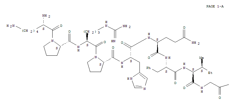 - Synonyms:Carassiussubstance P; L-Methioninamide, L-lysyl-L-prolyl-L-arginyl-L-prolyl-L-histidyl-L-glutaminyl-L-phenylalanyl-L-isoleucylglycyl-L-leucyl-