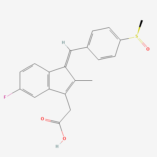 - Synonyms:Sulindac, trans-(R)-;85J4RRY34N;1316775-71-9;1H-Indene-3-acetic acid, 5-fluoro-2-methyl-1-((4-((R)-methylsulfinyl)phenyl)methylene)-, (1E)-;UNII-85J4RRY34N;trans-(R)-sulindac;Q27269645