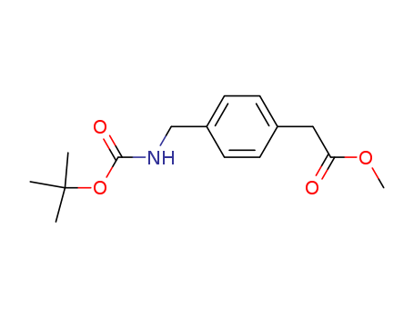 - Synonyms:TERT-BUTYL 4-((METHOXYCARBONYL)METHYL)BENZYLCARBAMATE;Benzeneacetic acid, 4-[[[(1,1-diMethylethoxy)carbonyl]aMino]Methyl]-, Methyl ester