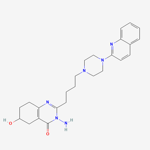 - Synonyms:TJ5VED6U7A;TZB-30878 metabolite M4;UNII-TJ5VED6U7A;CHEMBL1276921;864386-63-0;3-Amino-5,6,7,8-tetrahydro-6-hydroxy-2-(4-(4-(2-quinolinyl)-1-piperazinyl)butyl)-4(3H)-quinazolinone;4(3H)-Quinazolinone, 3-amino-5,6,7,8-tetrahydro-6-hydroxy-2-(4-(4-(2-quinolinyl)-1-piperazinyl)butyl)-;SCHEMBL3686290;BDBM50330464;3-amino-6-hydroxy-2-[4-(4-quinolin-2-ylpiperazin-1-yl)butyl]-5,6,7,8-tetrahydro-3h-quinazolin-4-one