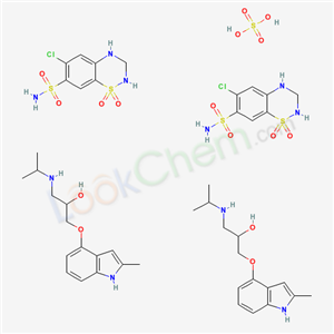 - Synonyms:Hydrochlorothiazide mixture with mepindolol sulfate;1-(isopropylamino)-3-[(2-methyl-1H-indol-4-yl)oxy]propan-2-ol;6-chloro-1,1-dioxo-3,4-dihydro-2H-benzo[e][1,2,4]thiadiazine-7-sulfonamide;Mepindolol sulphate and hydrochlorothiazide;Tenesor;2H-1,2,4-Benzothiadiazine-7-sulfonamide,6-chloro-3,4-dihydro-,1,1-dioxide. mixt. with 1-((1-methylethyl)amino)-3-((2-methyl-1H-indol-4-yl)oxy)-2-propanol sulfate (2:1);