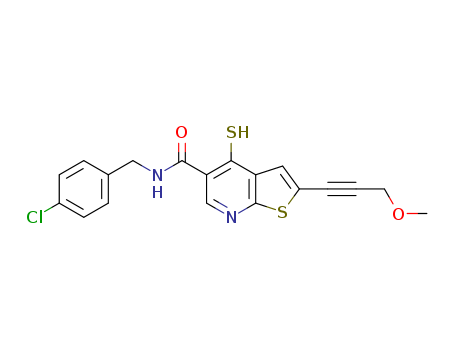- Name: Thieno[2,3-b]pyridine-5-carboxamide, N-[(4-chlorophenyl)methyl]-4-mercapto-2-(3-methoxy-1-propynyl)-