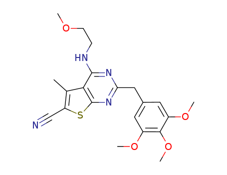- 731857-05-9/Thieno[2,3-d]pyrimidine-6-carbonitrile, 4-[(2-methoxyethyl)amino]-5-methyl-2-[(3,4,5-trimethoxyphenyl)methyl]-
