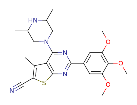 - 731856-56-7/Thieno[2,3-d]pyrimidine-6-carbonitrile, 4-(3,5-dimethyl-1-piperazinyl)-5-methyl-2-(3,4,5-trimethoxyphenyl)-