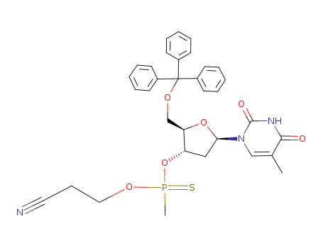 - Name: Thymidine, 5'-O-(triphenylmethyl)-, 3'-[O-(2-cyanoethyl) methylphosphonothioate], (R)-