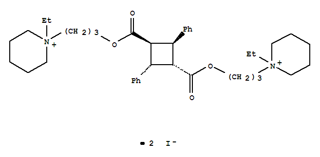 - Synonyms:Piperidinium,1-ethyl-1-(3-hydroxypropyl)-, iodide, diester with2,4-diphenyl-1,3-cyclobutanedicarboxylic acid (8CI);1,3-Cyclobutanedicarboxylic acid, 2,4-diphenyl-, diester with1-ethyl-1-(3-hydroxypropyl)piperidinium iodide (8CI); Anatruksonium;Anatruxonium; Truxipicurium iodide