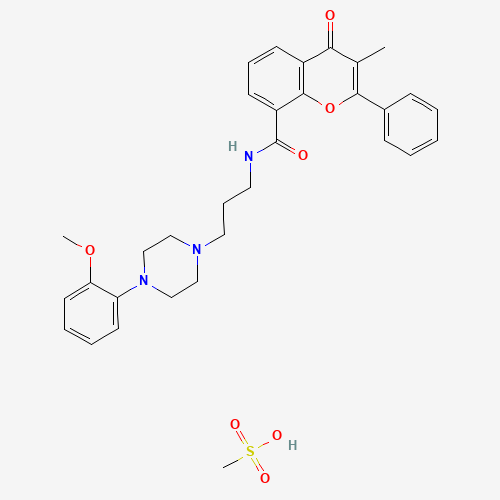- Synonyms:Upidosin mesylate;VD7V9I1E1H;UNII-VD7V9I1E1H;152735-24-5;4H-1-Benzopyran-8-carboxamide, N-(3-(4-(2-methoxyphenyl)-1-piperazinyl)propyl)-3-methyl-4-oxo-2-phenyl-, methanesulfonate (1:1);SCHEMBL8907074