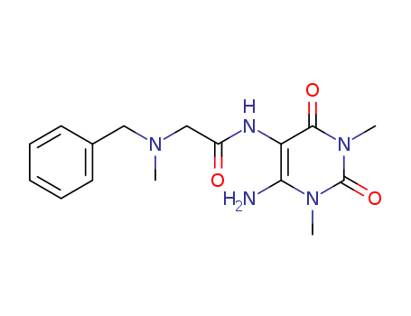 - Synonyms:Uracil,6-amino-5-[2-(benzylmethylamino)acetamido]-1,3-dimethyl- (6CI)