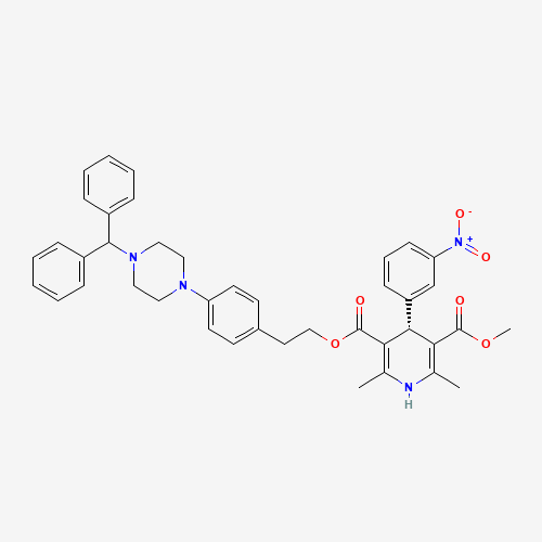 - Synonyms:Vatanidipine, (R)-;M65V61N43T;UNII-M65V61N43T;134028-06-1;3,5-Pyridinedicarboxylic acid, 1,4-dihydro-2,6-dimethyl-4-(3-nitrophenyl)-, 2-(4-(4-(diphenylmethyl)-1-piperazinyl)phenyl)ethyl methyl ester, (R)-;3,5-Pyridinedicarboxylic acid, 1,4-dihydro-2,6-dimethyl-4-(3-nitrophenyl)-, 3-(2-(4-(4-(diphenylmethyl)-1-piperazinyl)phenyl)ethyl) 5-methyl ester, (4R)-