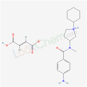 - Synonyms:Fumarate d'amino-4 N-(cyclohexyl-1-pyrrolidinyl-3) N-methyl benzamide;p-Amino-N-(1-cyclohexyl-3-pyrrolidinyl)-N-methylbenzamide fumarate;4-Amino-N-(1-cyclohexyl-3-pyrrolidinyl)-N-methylbenzamide fumarate;AHR-5645 B;BENZAMIDE,p-AMINO-N-(1-CYCLOHEXYL-3-PYRROLIDINYL)-N-METHYL-,FUMARATE;4-amino-N-(1-cyclohexylpyrrolidin-1-ium-3-yl)-N-methylbenzamide;