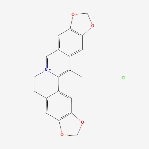 - Synonyms:Worenine chloride;Worenine chloride [MI];Woreninechloride;13-Methylpseudocoptisine chloride;UNII-4DK3KF0429;38763-54-1;4DK3KF0429;5,6-Dihydro-14-methylbis(1,3)benzodioxolo(5,6-a:5,6-g)quinolizinium ichloride;Bis(1,3)benzodioxolo(5,6-a:5',6'-g)quinolizinium, 5,6-dihydro-14-methyl-, chloride (1:1);SCHEMBL1427455;FT-0776658;Q27259448