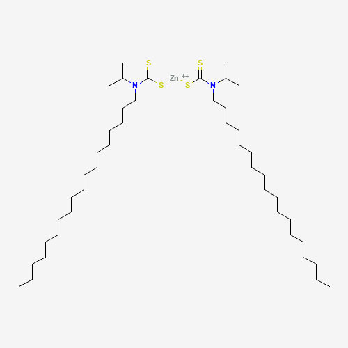 - Synonyms:EINECS 251-556-8;Zinc isopropyloctadecyldithiocarbamate;Bis(isopropyloctadecyldithiocarbamato-S,S')zinc;33516-09-5;Zinc, bis((1-methylethyl)octadecylcarbamodithioato-kappaS,kappaS')-, (T-4)-;Zinc, bis(N-(1-methylethyl)-N-octadecylcarbamodithioato-kappaS,kappaS')-, (T-4)-;Bis[isopropyloctadecyldithiocarbamato-S,S']zinc;zinc bis[octadecyl(propan-2-yl)carbamodithioate];C44H88N2S4Zn;SCHEMBL5106605;DTXSID40955141;C44-H88-N2-S4-Zn;Zinc, bis[(1-methylethyl)octadecylcarbamodithioato-S,S']-, (T-4)-;Zinc, bis[(1-methylethyl)octadecylcarbamodithioato-.kappa.S,.kappa.S']-, (T-4)-