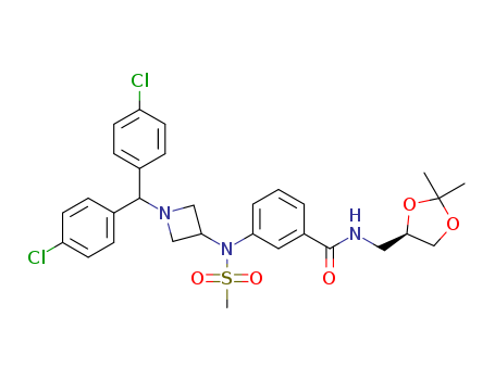 (-)-3-({1-[bis(4-chlorophenyl)methyl]azetidin-3-yl}(methanesulphonyl)amino)-N-(2,2-dimethyl-1,3-dioxolan-4-ylmethyl)benzamide(1186379-88-3)