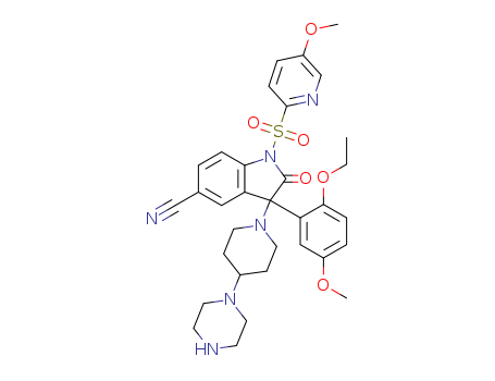 (+/-)-5-cyano-3-(2-ethoxy-5-methoxyphenyl)-1-(5-methoxypyridine-2-sulfonyl)-3-(4-piperazin-1-ylpiperidin-1-yl)-2,3-dihydro-1H-indol-2-one(1056552-31-8)