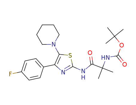 {1-[4-(4-fluoro-phenyl)-5-piperidin-1-yl-thiazol-2-ylcarbamoyl]-1-methyl-ethyl}-carbamic acid tert-butyl ester(1205601-48-4)