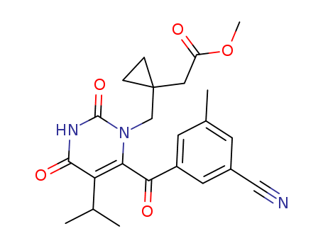 - Synonyms:{1-[6-(3-cyano-5-methyl-benzoyl)-5-isopropyl-2,4-dioxo-3,4-dihydro-2H-pyrimidin-1-ylmethyl]-cyclopropyl}-acetic acid methyl ester