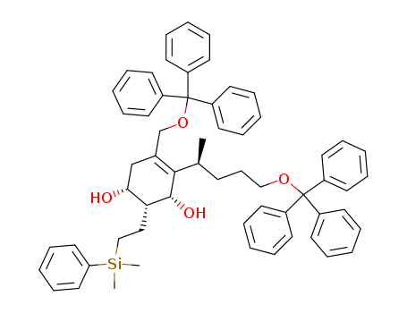 (1R,2R,3R)-2-[2-(Dimethyl-phenyl-silanyl)-ethyl]-4-((S)-1-methyl-4-trityloxy-butyl)-5-trityloxymethyl-cyclohex-4-ene-1,3-diol(885483-14-7)