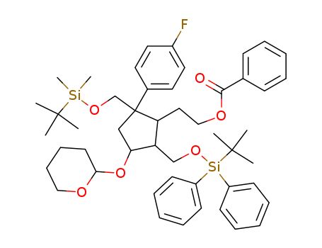 (1R,2S,3R,4S)-2-[1-tert-Butyldimethylsilyloxymethyl-1-(4-fluorophenyl)-3-tert-butyldiphenylsilyloxymethyl-4-(tetrahydropyran-2-yloxy)-cyclopentan-2yl]-1-benzoyloxyethane(151050-67-8)