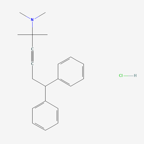 - Synonyms:SMR000217323;MLS000590255;CHEMBL1583071;AKOS030514230;(1,1-Dimethyl-5,5-diphenyl-pent-2-ynyl)-dimethyl-amine;N,N,2-trimethyl-6,6-diphenylhex-3-yn-2-amine hydrochloride