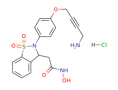 - Synonyms:{2-[4-(4-amino-but-2-ynyloxy)-phenyl]-1,1-dioxo-2,3-dihydro-1H-benzo[d]isothiazol-3-yl}-N-hydroxyacetamide hydrochloride