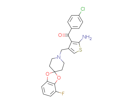 (2-amino-4-(((4-fluoro-spiro-benzo[1,3-d]-dioxol-2-yl)-piperidin-1-yl)methyl)-thiophen-3-yl)(4-chlorophenyl)methanone(1027492-99-4)
