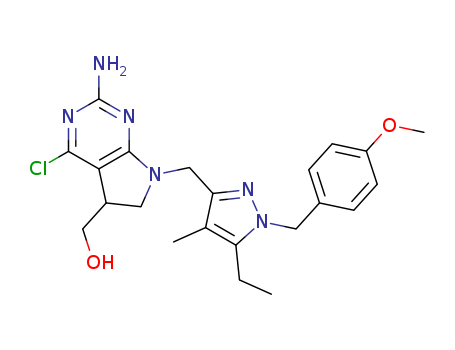 - Synonyms:{2-amino-4-chloro-7-[5-ethyl-1-(4-methoxy-benzyl)-4-methyl-1H-pyrazol-3-ylmethyl]-6,7-dihydro-5H-pyrrolo[2,3-d]pyrimidin-5-yl}-methanol