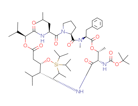 - Synonyms:(20-benzyl-5-isobutyl-8,13-diisopropyl-17,21-dimethyl-4,7,10,15,19,22-hexaoxo-12-triisopropylsilanyloxy-eicosahydro-9,18-dioxa-3a,6,14,21-tetraaza-cyclopentacycloheneicosen-16-yl)-carbamic acid tert-butyl ester