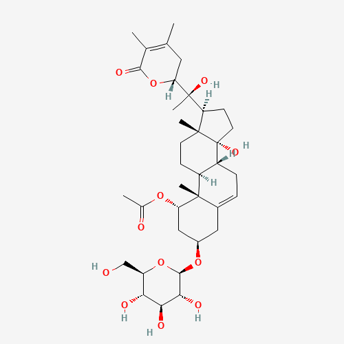 - Synonyms:DTXSID001106423;(22R)-1alpha-Acetoxy-3beta-(beta-D-glucopyranosyloxy)-14,20,22-trihydroxyergosta-5,24-diene-26-oic acid delta-lactone;227179-07-9;Ergosta-5,24-dien-26-oic acid, 1-(acetyloxy)-3-(beta-D-glucopyranosyloxy)-14,20,22-trihydroxy-, delta-lactone, (1alpha,3beta,22R)-