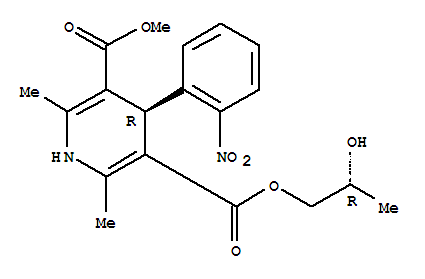- Synonyms:3,5-Pyridinedicarboxylicacid, 1,4-dihydro-2,6-dimethyl-4-(2-nitrophenyl)-, 2-hydroxypropyl methylester, (R*,R*)- (9CI); 3,5-Pyridinedicarboxylic acid,1,4-dihydro-2,6-dimethyl-4-(2-nitrophenyl)-, 2-hydroxypropyl methyl ester,(R*,R*)-(?à)-