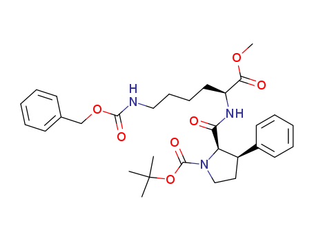 - Synonyms:(2R,3R)-2-((S)-5-Benzyloxycarbonylamino-1-methoxycarbonyl-pentylcarbamoyl)-3-phenyl-pyrrolidine-1-carboxylic acid tert-butyl ester