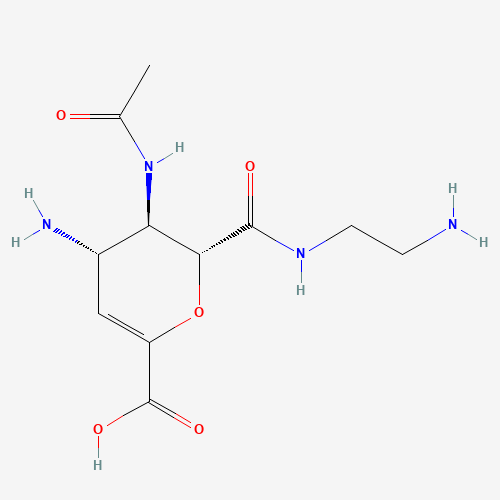 - Synonyms:carboxamide deriv. 4a;BDBM4923;CHEMBL350948;DTXSID101106557;(2R,3R,4S)-3-acetamido-4-amino-2-(2-aminoethylcarbamoyl)-3,4-dihydro-2H-pyran-6-carboxylic acid;(2R,3R,4S)-4-amino-2-[(2-aminoethyl)carbamoyl]-3-acetamido-3,4-dihydro-2H-pyran-6-carboxylic acid;(4S)-4alpha-Amino-5beta-(acetylamino)-6alpha-[(2-aminoethyl)carbamoyl]-5,6-dihydro-4H-pyran-2-carboxylic acid;(4S,5R,6R)-5-(Acetylamino)-4-amino-6-[N-(2-aminoethyl)carbamoyl]-4H-5,6-dihydropyran-2-carboxylic acid;204196-85-0;L-arabino-Hept-2-enonic acid, 5-(acetylamino)-4-amino-7-[(2-aminoethyl)amino]-2,6-anhydro-3,4,5,7-tetradeoxy-7-oxo-