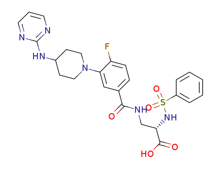 - Synonyms:(2S)-benzenesulfonylamino-3-[4-fluoro-3-{4-(pyrimidin-2-ylamino)piperidin-1-yl}benzoylamino]-propionic acid