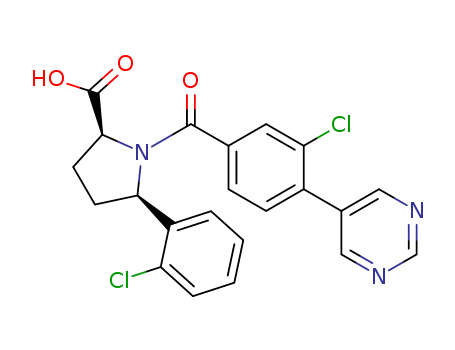 (2S,5R)-1-(3-chloro-4-(pyrimidin-5-yl)benzoyl)-5-(2-chlorophenyl)pyrrolidine-2-carboxylic acid(1312802-00-8)