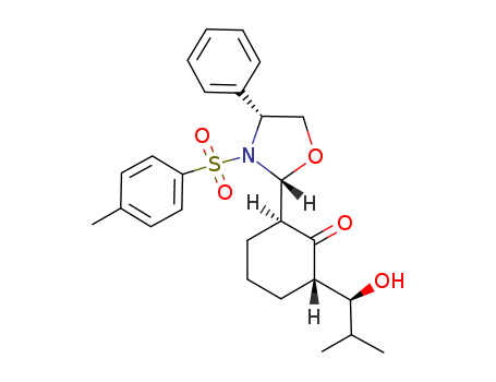 - Synonyms:(2S,6S)-2-((S)-1-Hydroxy-2-methyl-propyl)-6-[(2R,4R)-4-phenyl-3-(toluene-4-sulfonyl)-oxazolidin-2-yl]-cyclohexanone
