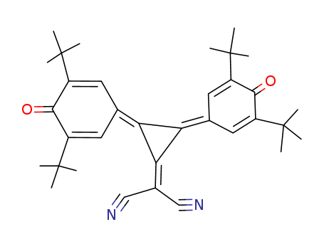 - Synonyms:(Bis(3,5-bis(1,1-dimethylethyl)-4-oxo-2,5-cyclohexadien-1-ylidene)cyclopropylidene)propanedinitrile;1,2-Bis(3,5-di-tert-butyl-4-oxo-2,5-cyclohexadiene-1-ylidene)-3-dicyanomethylenecyclopropane;[bis(3,5-di-tert-butyl-4-oxocyclohexa-2,5-dien-1-ylidene)cyclopropylidene]malononitrile;1,2-Bis(3,5-di-tert.-butyl-4-oxo-2,5-cyclohexadien-1-yliden)-3-dicyanomethylencyclopropan;