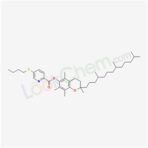 - Synonyms:2-Pyridinecarboxylic acid,5-(butylthio)-,3,4-dihydro-2,5,7,8-tetramethyl-2-(4,8,12-trimethyltridecyl)-2H-1-benzopyran-6-yl ester;