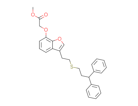 - Synonyms:{3-[2-(3,3-diphenylpropylsulfanyl)ethyl]benzofuran-7-yloxy}acetic acid methyl ester