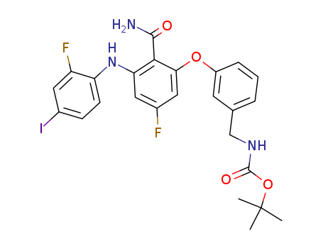 {3-[2-carbamoyl-5-fluoro-3-(2-fluoro-4-iodo-phenylamino)-phenoxy]-benzyl}-carbamic acid tert-butyl ester(1192453-75-0)
