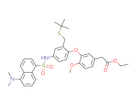 {3-[2-tert-butylsulfanylmethyl-4-(5-dimethylamino-naphthalene-1-sulfonylamino)-phenoxy]-4-methoxy-phenyl}-acetic acid ethyl ester(1203505-79-6)