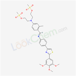 - Synonyms:3-methyl-N,N-bis(2-methylsulfonyloxyethyl)-4-[[4-[2-(3,4,5-trimethoxyphenyl)-1,3-thiazol-4-yl]phenyl]iminomethyl]aniline;