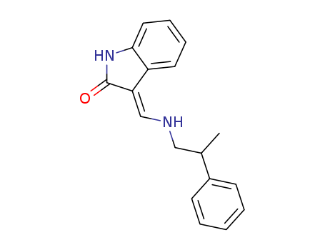 - Synonyms:1,3-Dihydro-3-(((2-phenylpropyl)amino)methylene)-2H-indol-2-one (E);(3E)-3-{[(2-phenylpropyl)amino]methylidene}-1,3-dihydro-2H-indol-2-one;2H-Indol-2-one,1,3-dihydro-3-(((2-phenylpropyl)amino)methylene)-,(E);