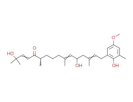 (3E,10E,14E)-2,12-Dihydroxy-16-(2-hydroxy-5-methoxy-3-methyl-phenyl)-2,6,10,14-tetramethyl-hexadeca-3,10,14-trien-5-one(83644-04-6)