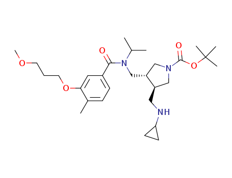 (3R,4R)-3-({[4-methyl-3-(3-methoxy-propoxy)-benzoyl]-isopropyl-amino}-methyl)-4-cyclopropylaminomethyl-pyrrolidine-1-carboxylic acid tert-butyl ester(911114-26-6)