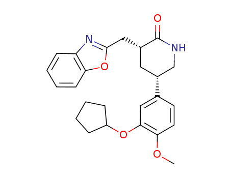 - Synonyms:(3S,5S)-3-(benzoxazol-2-ylmethyl)-5-(3-cyclopentyloxy-4-methoxyphenyl)iperidin-2-one