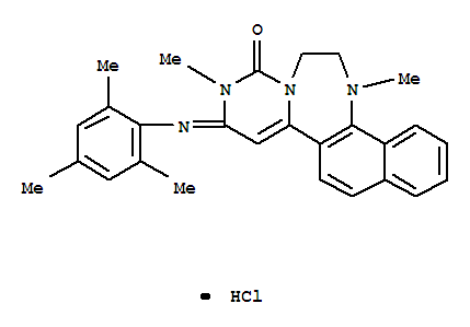 - Synonyms:Naphtho[2,1-f]pyrimido[1,6-d][1,4]diazepin-1(2H)-one,3,11,12,13-tetrahydro-2,11-dimethyl-3-[(2,4,6-trimethylphenyl)imino]-,monohydrochloride (9CI)